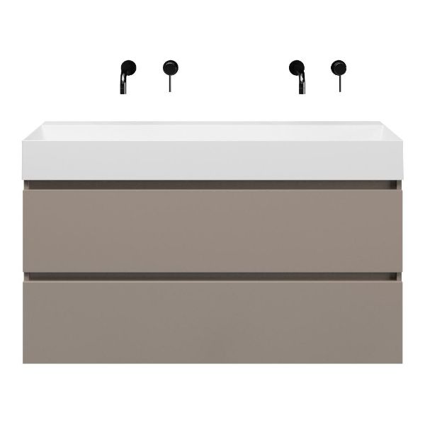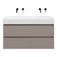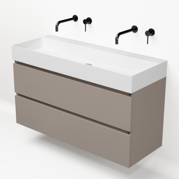 | Bellanti Fiore /Azzurra badmeubel 120x46 2 softclose laden taupe greeploos keramische wastafel wit glans zonder kraangaten |