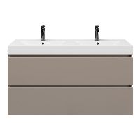 | | Bellanti Fiore /Wave badmeubel 120x46 2 softclose laden taupe greeploos polystone wastafel dubbel wit met 2 kraangaten |