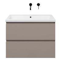 | | Bellanti Gisella/Amelia badmeubel 80x46 2 softclose laden taupe greeploos keramische wastafel wit glans zonder kraangaten |