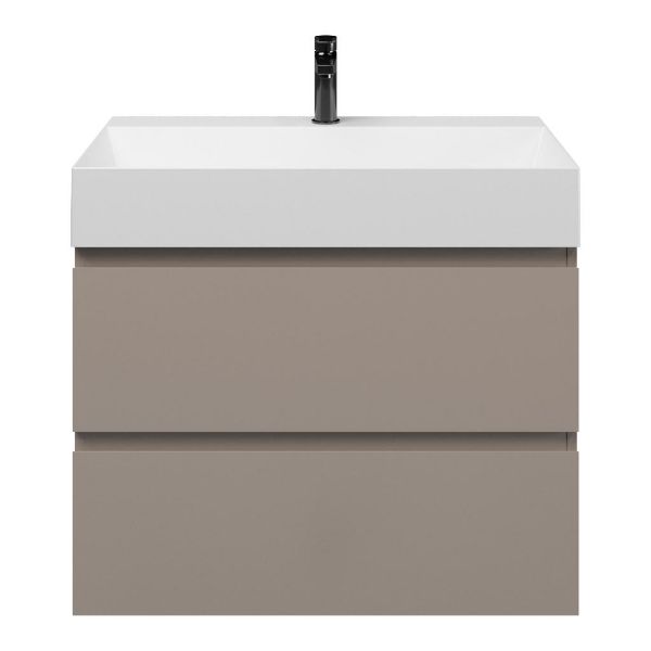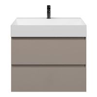 Greeploos badkamermeubel in de kleur taupe is 80 cm breed. De wastafel is vervaardig in keramiek en heeft de kleur wit mat keramiek. Dit badkamermeubel met deze wastafel is leverbaar tussen de 60 cm t/m 160 cm