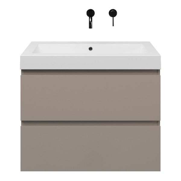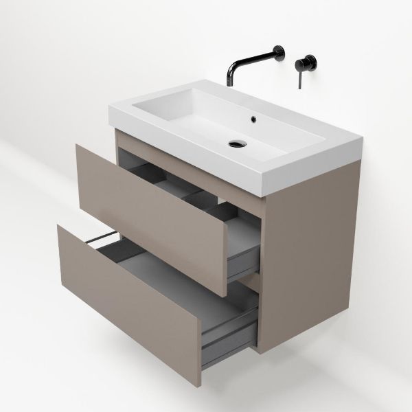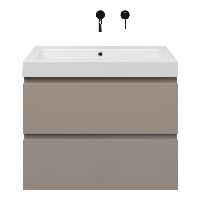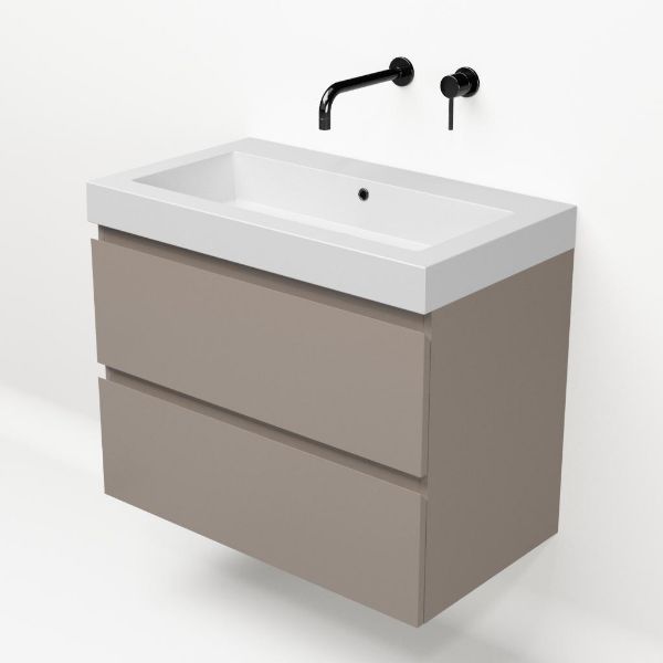 | | Bellanti Gisella/Esta-Q badmeubel 80x46 2 softclose laden taupe greeploos quartz wastafel mat wit zonder kraangaten |