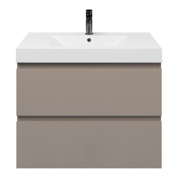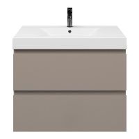 Greeploos badkamermeubel in de kleur taupe is 80 cm breed. De wastafel is vervaardig in polystone en heeft de kleur wit. Dit badkamermeubel met deze wastafel is leverbaar tussen de 60 cm t/m 120 cm