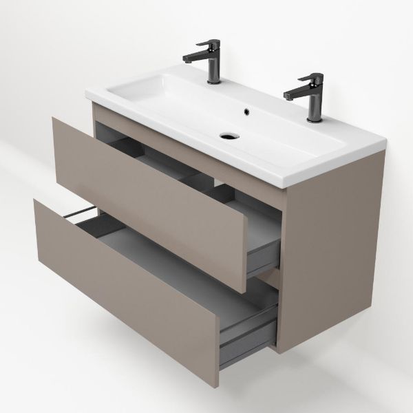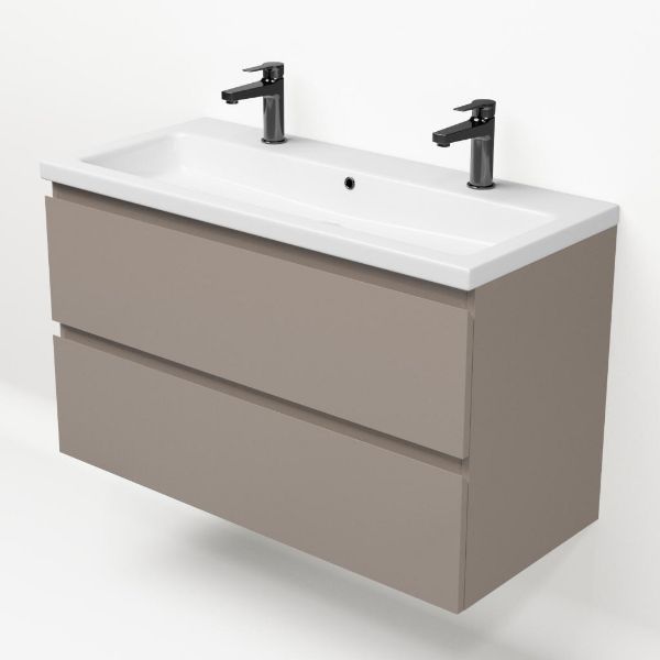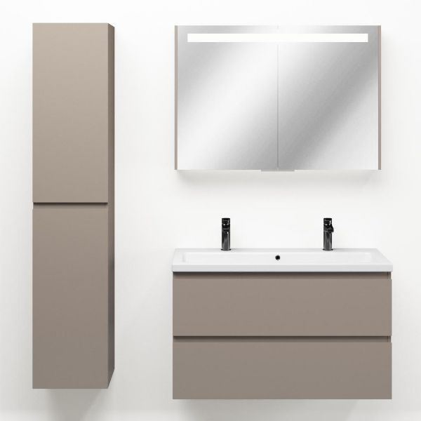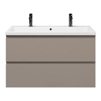 | Bellanti Gisella/Amelia badmeubel 100x46 2 softclose laden taupe greeploos keramische wastafel wit glans met 2 kraangaten |