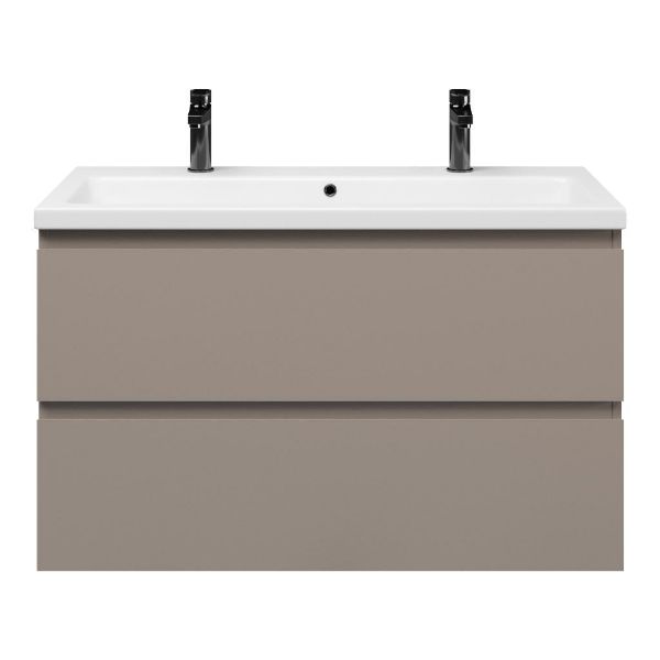 | | Bellanti Gisella/Amelia badmeubel 100x46 2 softclose laden taupe greeploos keramische wastafel wit glans met 2 kraangaten |