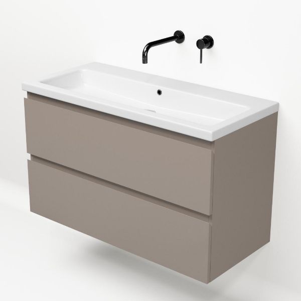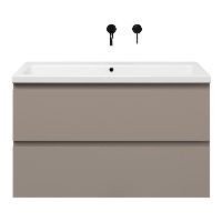 | Bellanti Gisella/Amelia badmeubel 100x46 2 softclose laden taupe greeploos keramische wastafel wit glans zonder kraangaten |