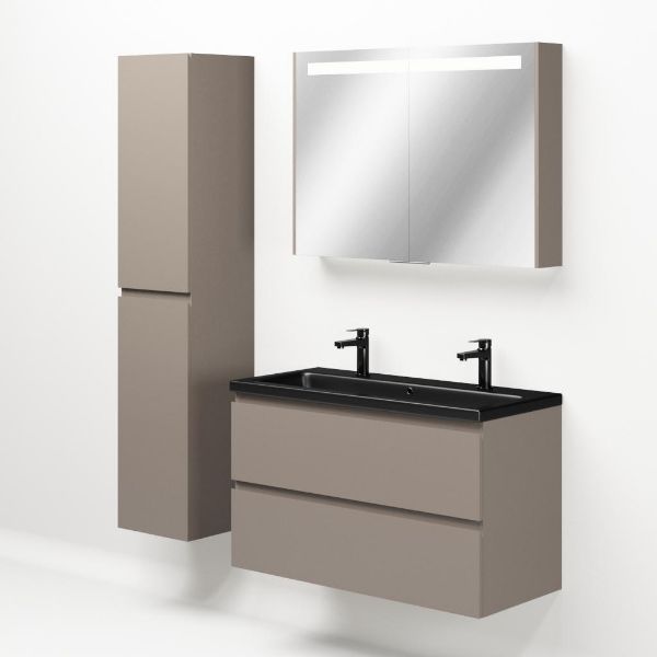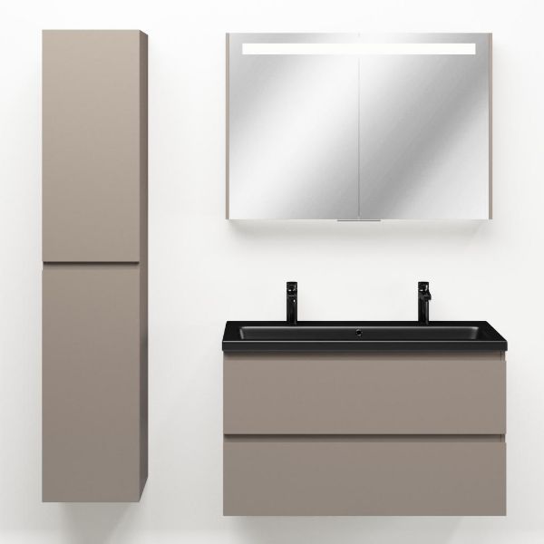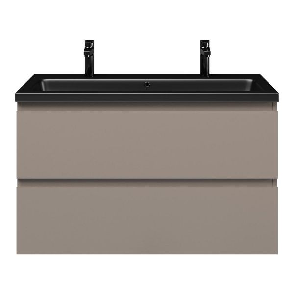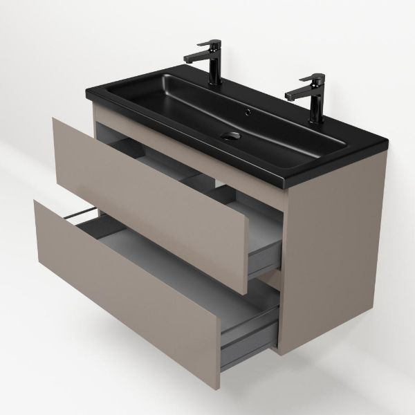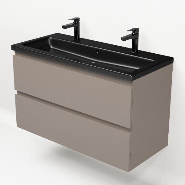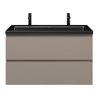 | Bellanti Gisella/Amelia badmeubel 100x46 2 softclose laden taupe greeploos keramische wastafel zwart mat met 2 kraangaten |
