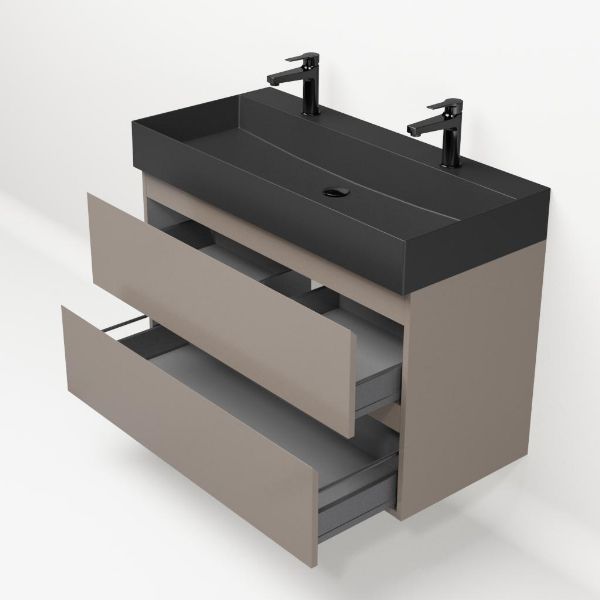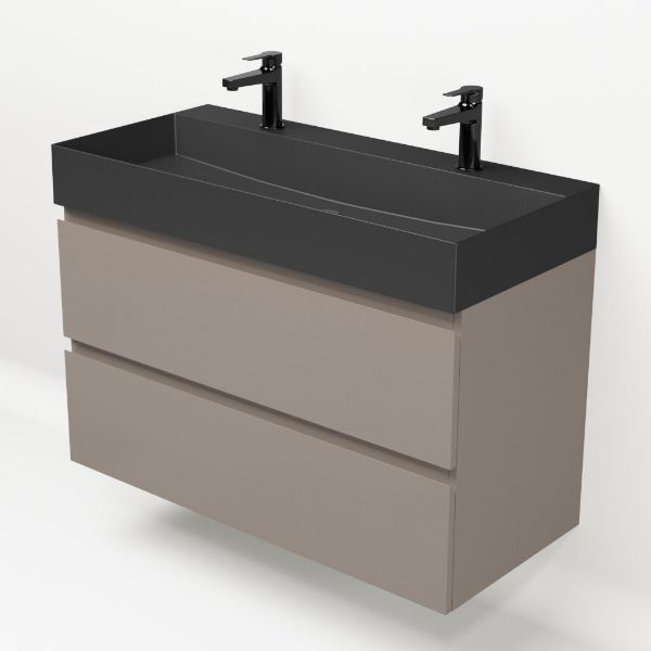 Bellanti Gisella/Azzurra badmeubel 100x46 2 softclose laden taupe greeploos keramische wastafel antraciet mat met 2 kraangaten