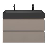 Greeploos badkamermeubel in de kleur taupe is 100 cm breed.  De wastafel is vervaardig in keramiek en heeft de kleur antraciet mat keramiek. Dit badkamermeubel met deze wastafel is leverbaar tussen de 60 cm t/m 160 cm