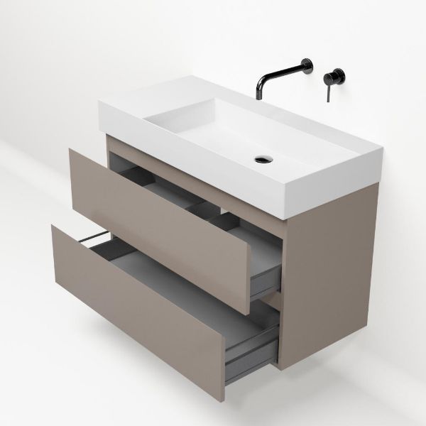 | Bellanti Gisella/Azzurra badmeubel 100x46 2 softclose laden taupe greeploos keramische wastafel rechts wit glans zonder kraangat |