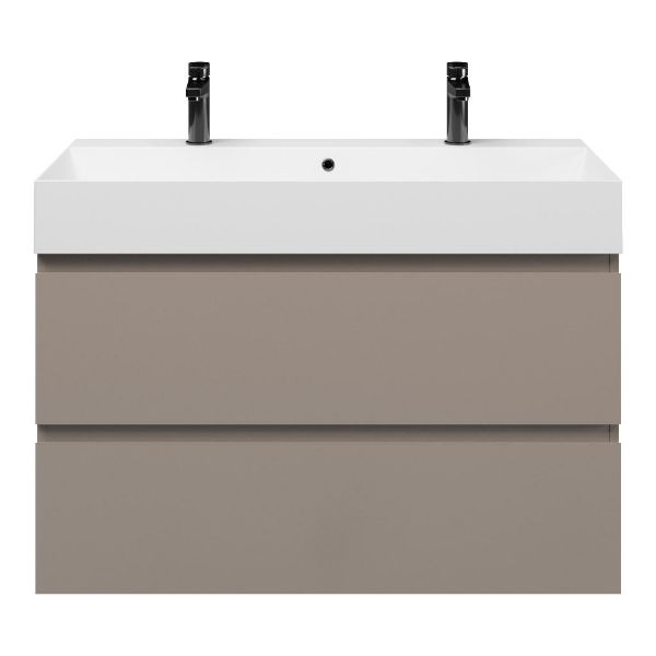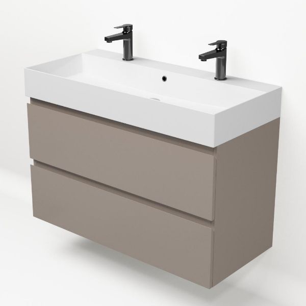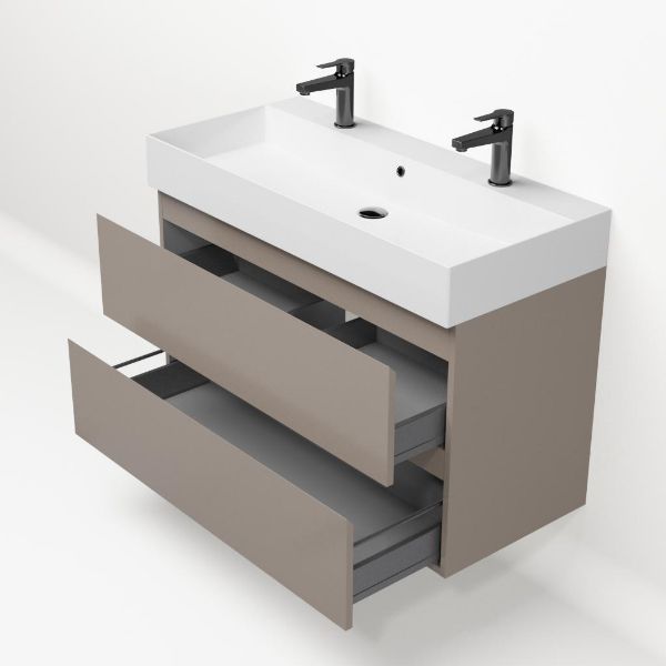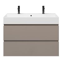 | Bellanti Gisella/Azzurra badmeubel 100x46 2 softclose laden taupe greeploos keramische wastafel wit glans met 2 kraangaten |