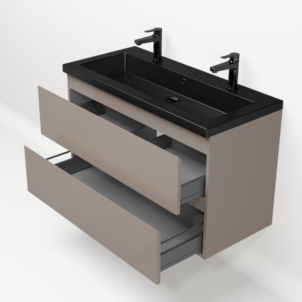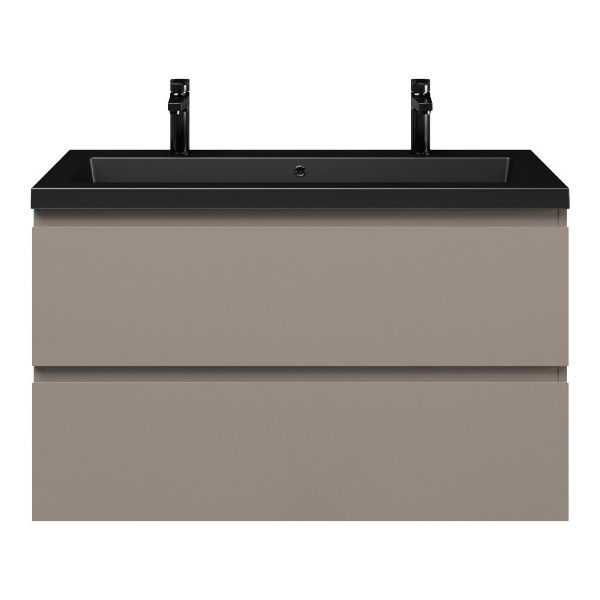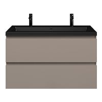 | | Bellanti Gisella/Esta badmeubel 100x46 2 softclose laden taupe greeploos polystone wastafel mat zwart met 2 kraangaten |