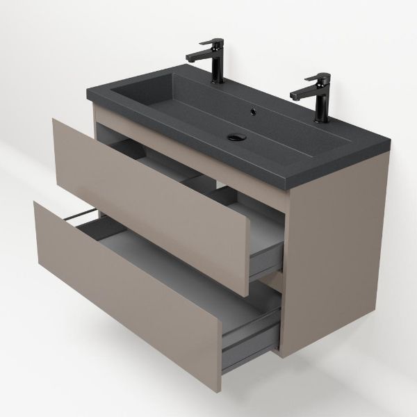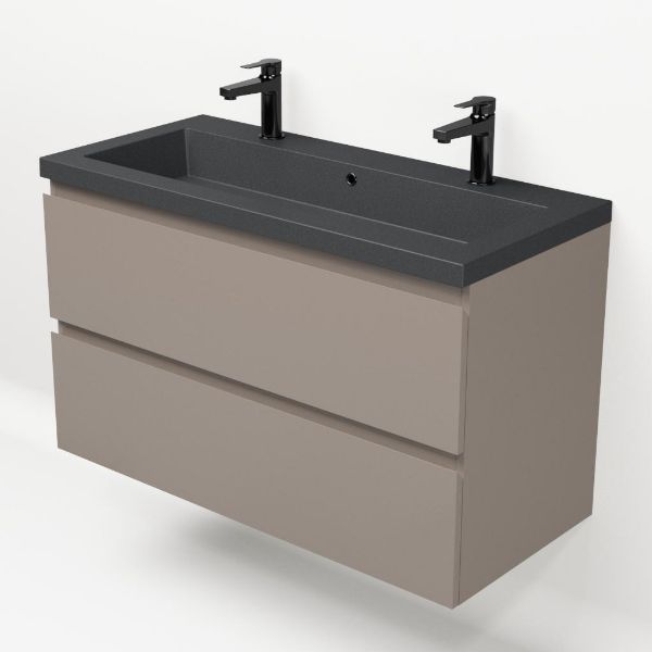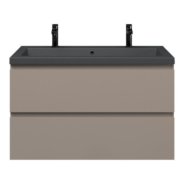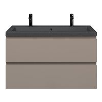 | | Bellanti Gisella/Esta-Q badmeubel 100x46 2 softclose laden taupe greeploos quartz wastafel mat grijs met 2 kraangaten |