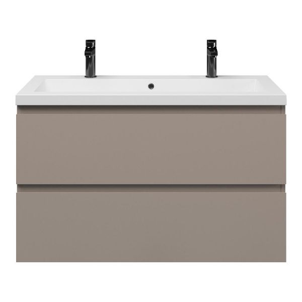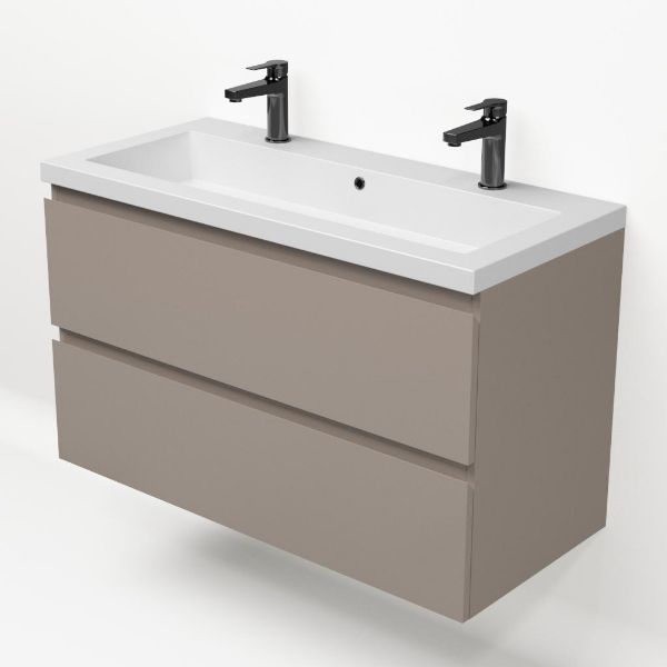 | Bellanti Gisella/Esta-Q badmeubel 100x46 2 softclose laden taupe greeploos wastafel mat wit met 2 kraangaten |