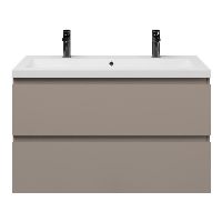 | | Bellanti Gisella/Esta-Q badmeubel 100x46 2 softclose laden taupe greeploos wastafel mat wit met 2 kraangaten |