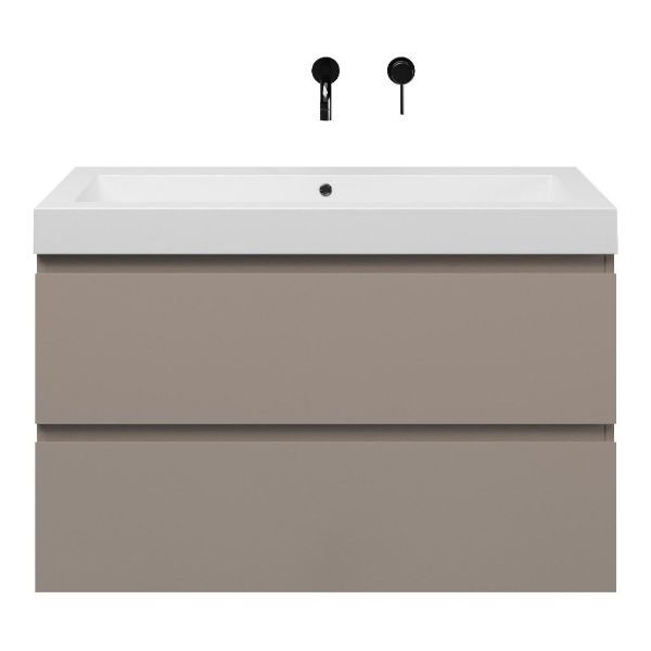 | | Bellanti Gisella/Esta-Q badmeubel 100x46 2 softclose laden taupe greeploos quartz wastafel mat wit zonder kraangaten |
