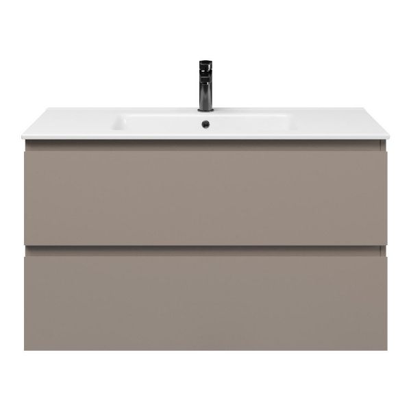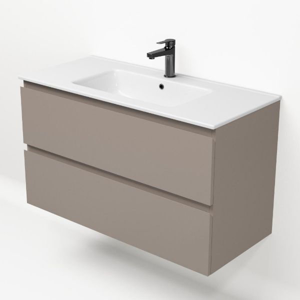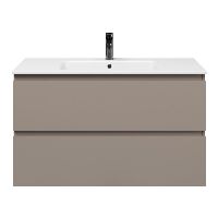 | Bellanti Gisella/Etna badmeubel 100x46 2 softclose laden taupe greeploos keramische wastafel wit met 1 kraangat |