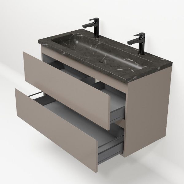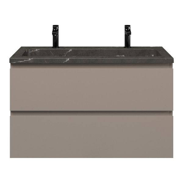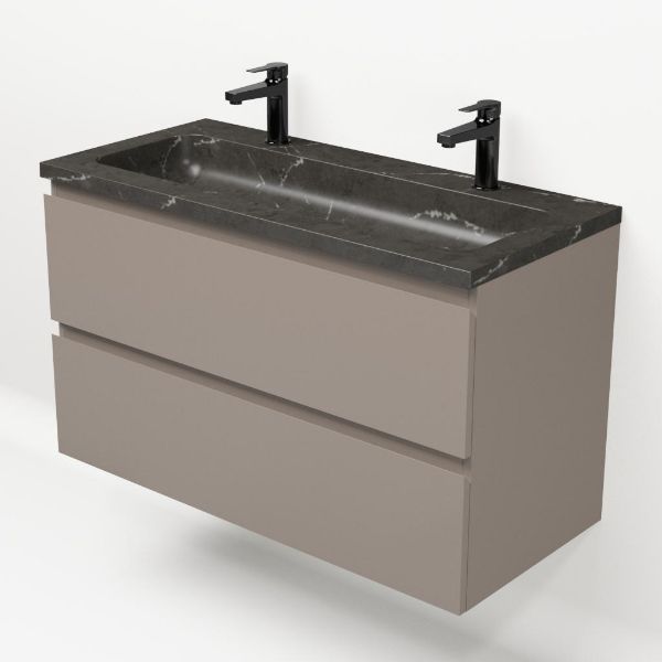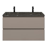 | | Bellanti Gisella/Square badmeubel 100x46 2 softclose laden taupe greeploos natuursteen wastafel blue stone met 2 kraangaten |