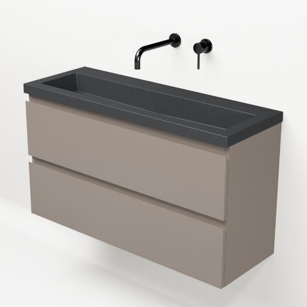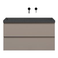 | | Bellanti Secca/Esta-Q ondiep badmeubel 100x36 2 softclose laden taupe greeploos met quartz wastafel mat grijs zonder kraangat zonder overloop |