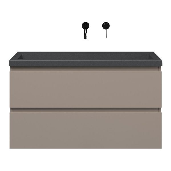 | Bellanti Secca/Esta-Q ondiep badmeubel 100x36 2 softclose laden taupe greeploos met quartz wastafel mat grijs zonder kraangat zonder overloop |