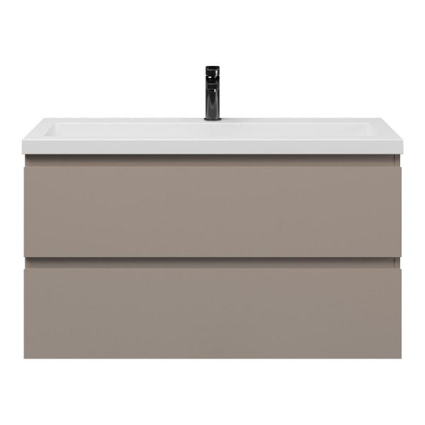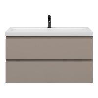 | | Bellanti Secca/Esta-Q ondiep badmeubel 100x36 2 softclose laden taupe greeploos met quartz wastafel mat wit met 1 kraangat zonder overloop |
