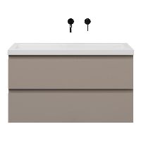 | | Bellanti Secca/Esta-Q ondiep badmeubel 100x36 2 softclose laden taupe greeploos met quartz wastafel mat wit zonder kraangat zonder overloop |