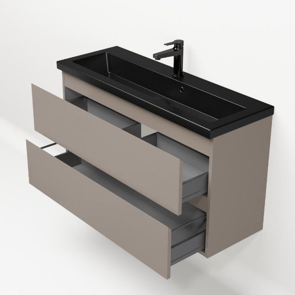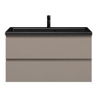 | Bellanti Secca/Amelia ondiep badmeubel 100x36 2 softclose laden taupe greeploos keramische wastafel mat zwart met 1 kraangaten |