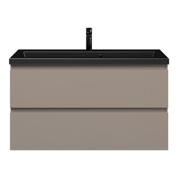 | | Bellanti Secca/Amelia ondiep badmeubel 100x36 2 softclose laden taupe greeploos keramische wastafel mat zwart met 1 kraangaten |