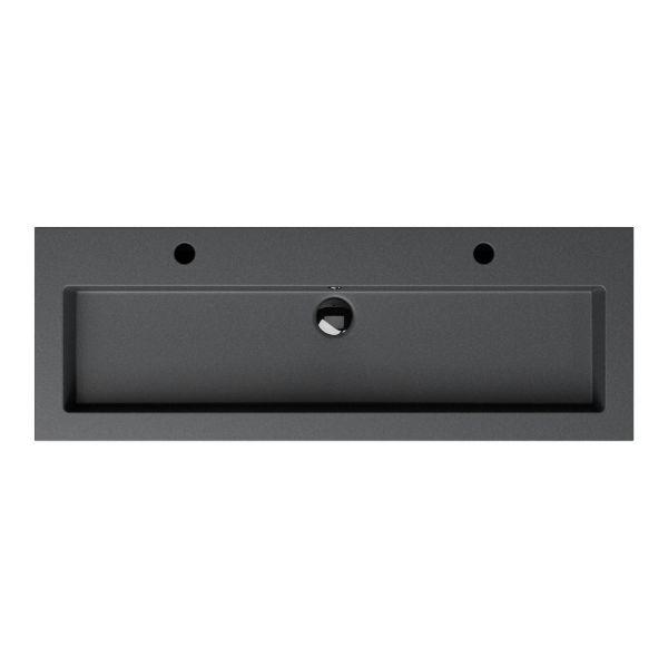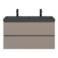 | | Bellanti Secca/Esta-Q ondiep badmeubel 100x36 2 softclose laden taupe greeploos met quartz wastafel mat grijs met 2 kraangaten met overloop |