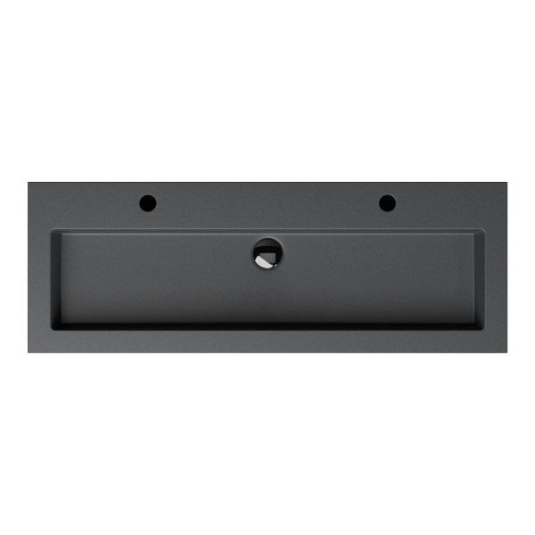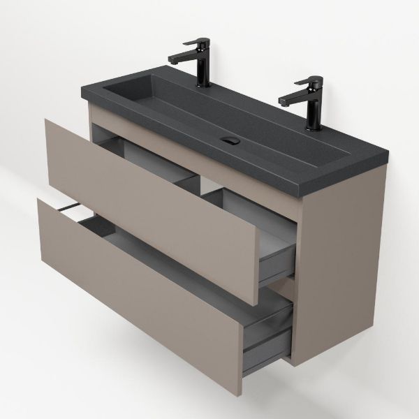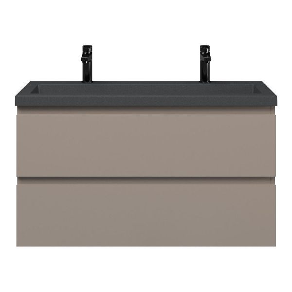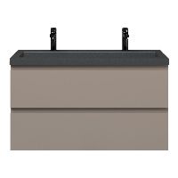 | | Bellanti Secca/Esta-Q ondiep badmeubel 100x36 2 softclose laden taupe greeploos met quartz wastafel mat grijs met 2 kraangaten zonder overloop |