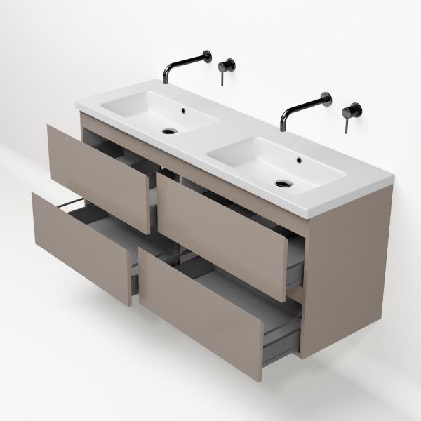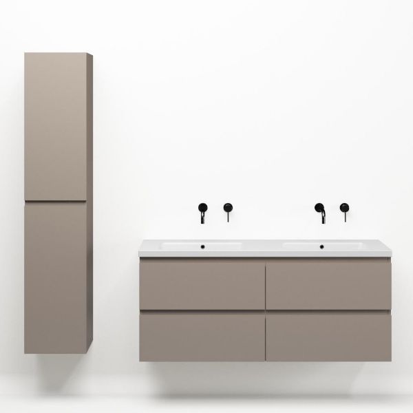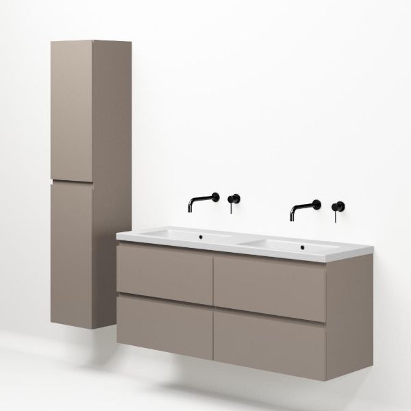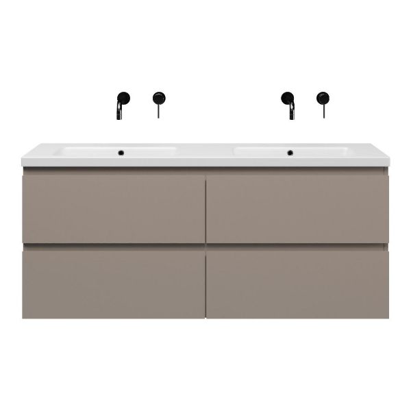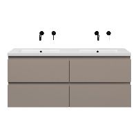 | | Bellanti Gisella/Amelia badmeubel 140x46 4 softclose laden taupe greeploos keramiek wastafel dubbel mat wit zonder kraangaten |