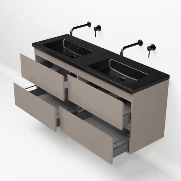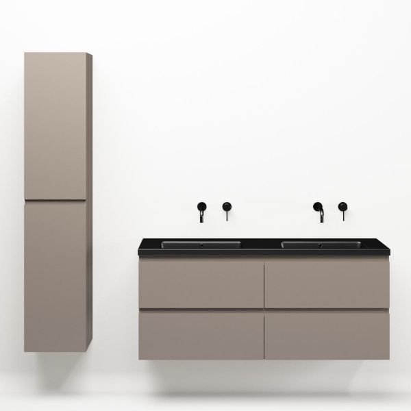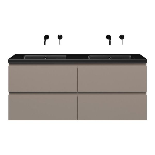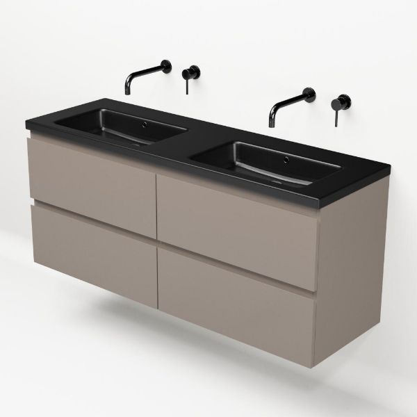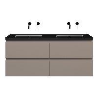 | Bellanti Gisella/Amelia badmeubel 140x46 4 softclose laden taupe greeploos keramiek wastafel dubbel mat zwart zonder kraangaten |