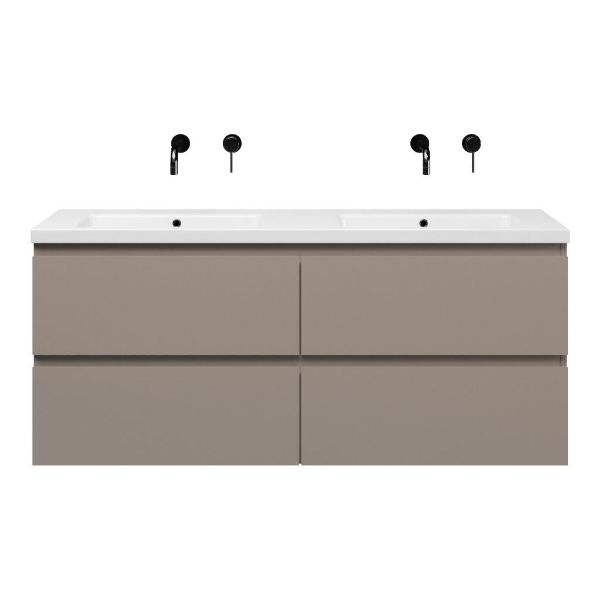 | Bellanti Gisella/Amelia badmeubel 140x46 4 softclose laden taupe greeploos keramische wastafel dubbel wit glans zonder kraangaten |