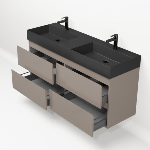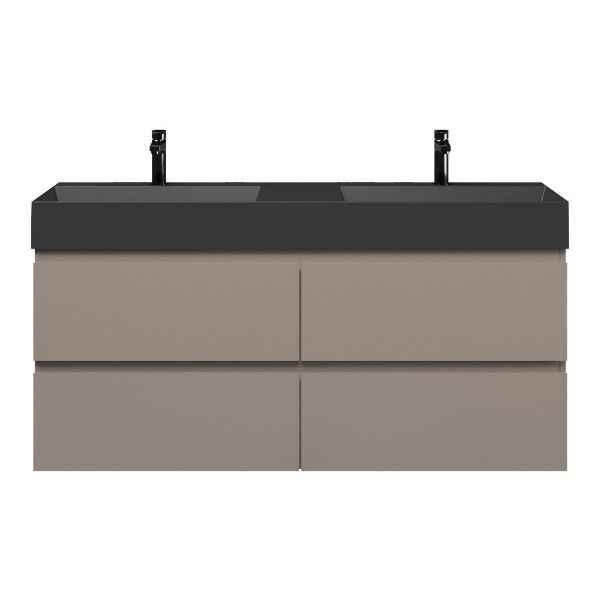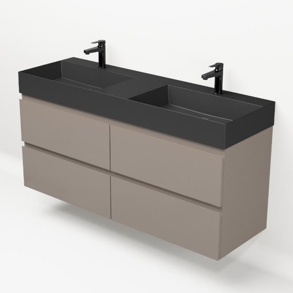 | Bellanti Gisella/Azzurra badmeubel 140x46 4 softclose laden taupe greeploos keramische wastafel dubbel antraciet mat met 2 kraangaten |