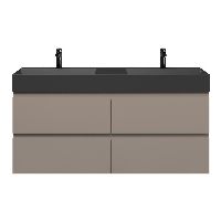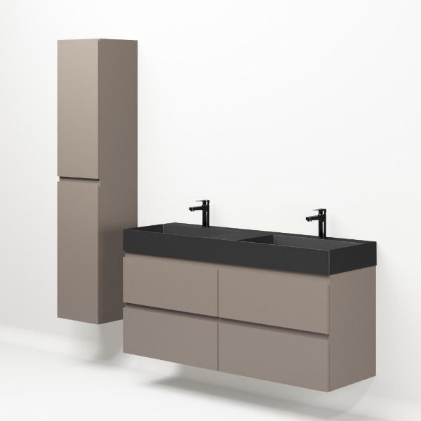 Greeploos badkamermeubel in de kleur taupe is 140 cm breed. De wastafel is vervaardig in keramiek en heeft de kleur antraciet mat keramiek. Dit badkamermeubel met deze wastafel is leverbaar tussen de 60 cm t/m 160 cm
