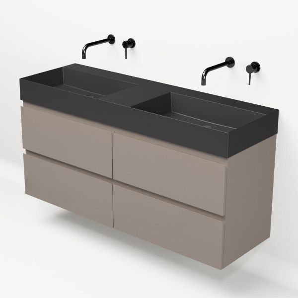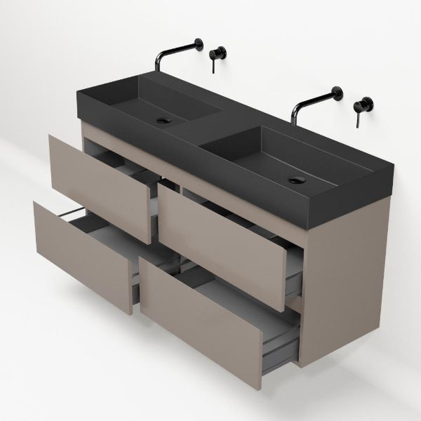 | Bellanti Gisella/Azzurra badmeubel 140x46 4 softclose laden taupe greeploos keramische wastafel dubbel antraciet mat zonder kraangaten |