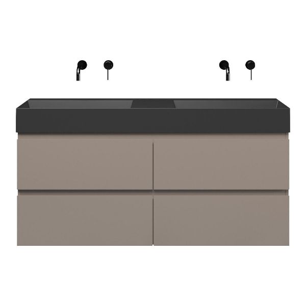 | | Bellanti Gisella/Azzurra badmeubel 140x46 4 softclose laden taupe greeploos keramische wastafel dubbel antraciet mat zonder kraangaten |