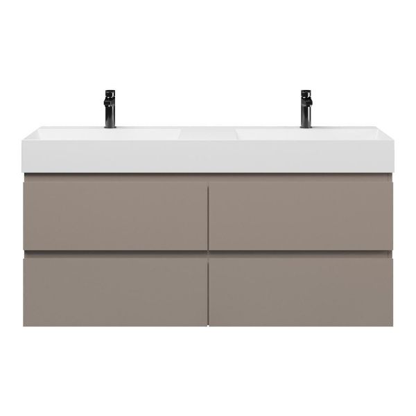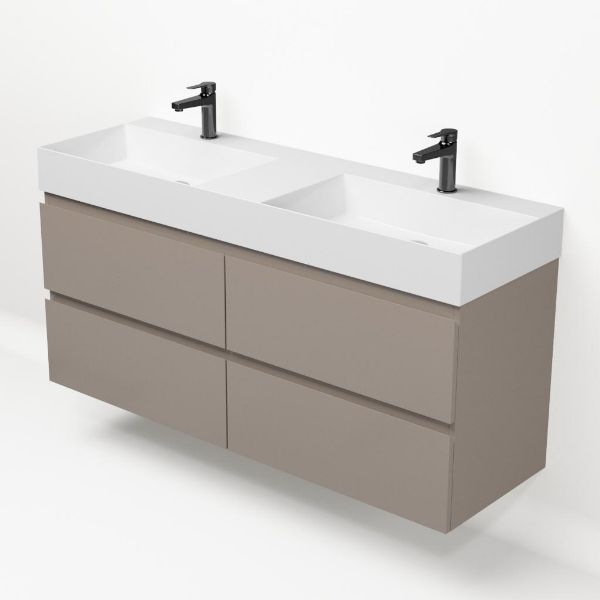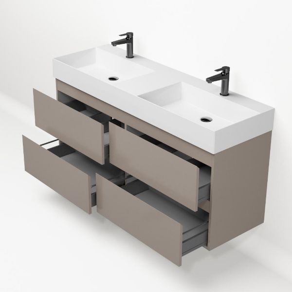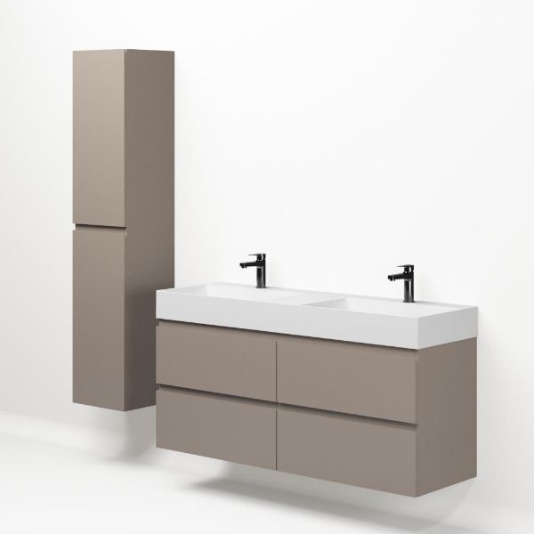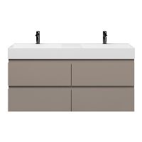 | Bellanti Gisella/Azzurra badmeubel 140x46 4 softclose laden taupe greeploos keramische wastafel dubbel wit glans met 2 kraangaten |
