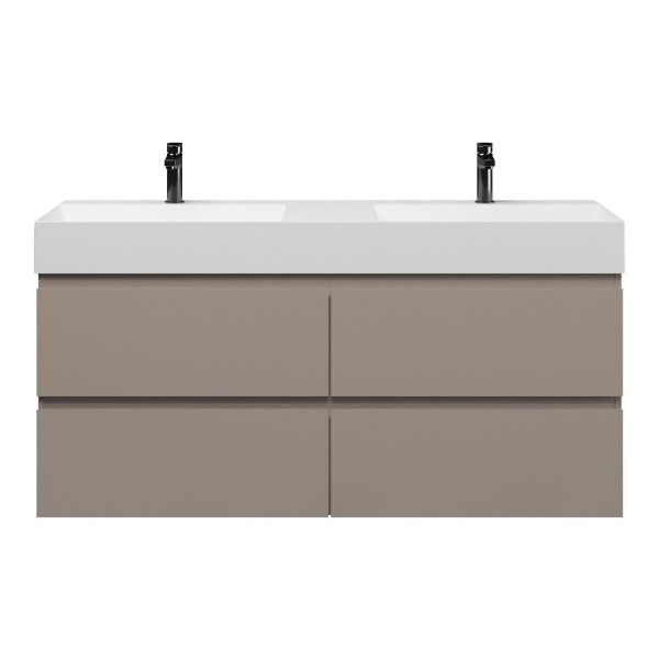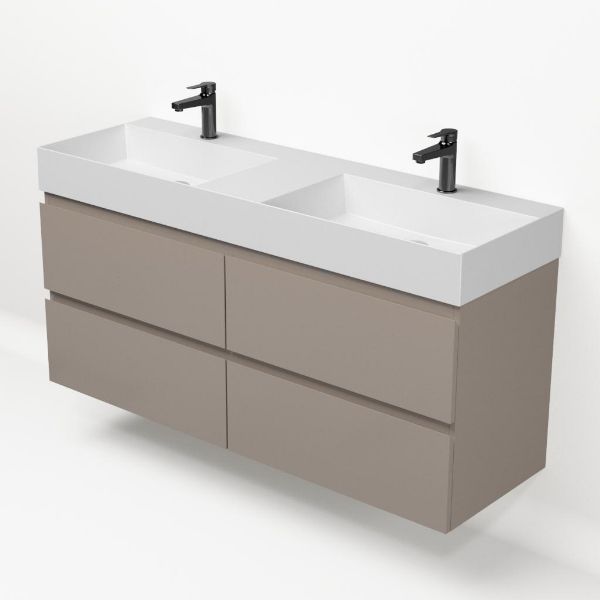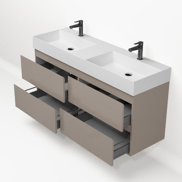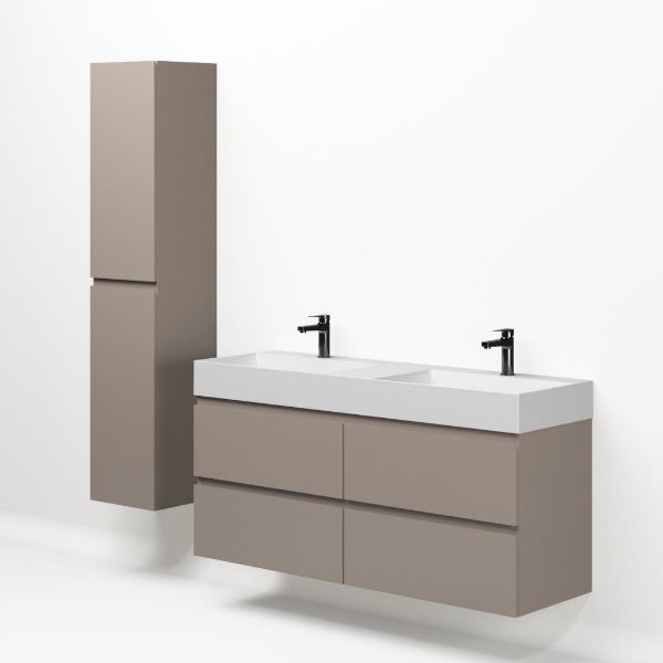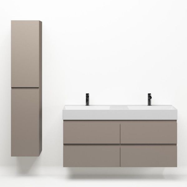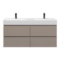 | Bellanti Gisella/Azzurra badmeubel 140x46 4 softclose laden taupe greeploos keramische wastafel dubbel wit mat met 2 kraangaten |