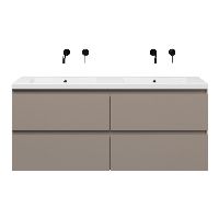 Bellanti Gisella/Esta badmeubel 140x46 4 softclose laden taupe greeploos polystone wastafel dubbel wit zonder kraangaten