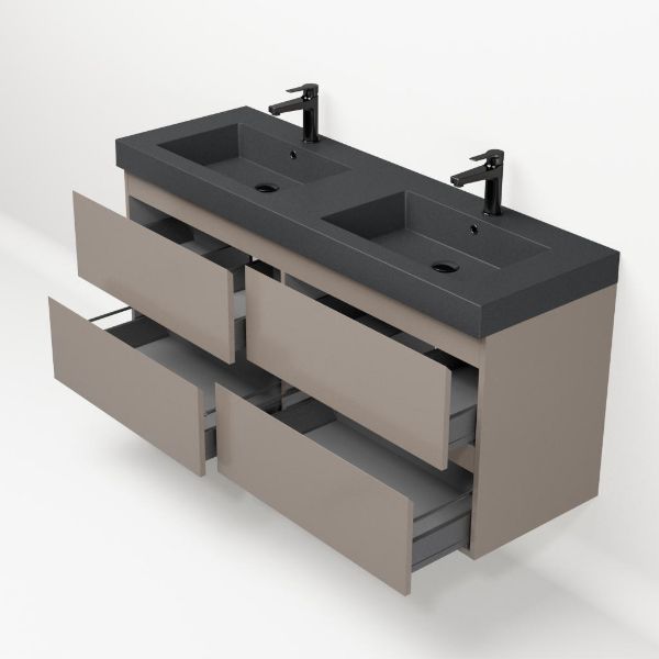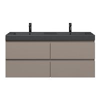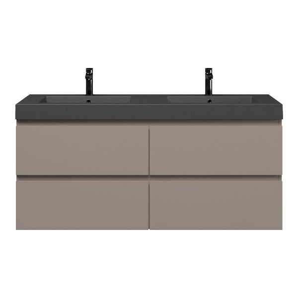 Bellanti Gisella/Esta-Q badmeubel 140x46 4 softclose laden taupe greeploos polystone wastafel dubbel mat grijs met 2 kraangaten