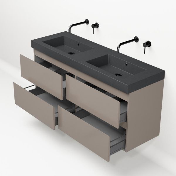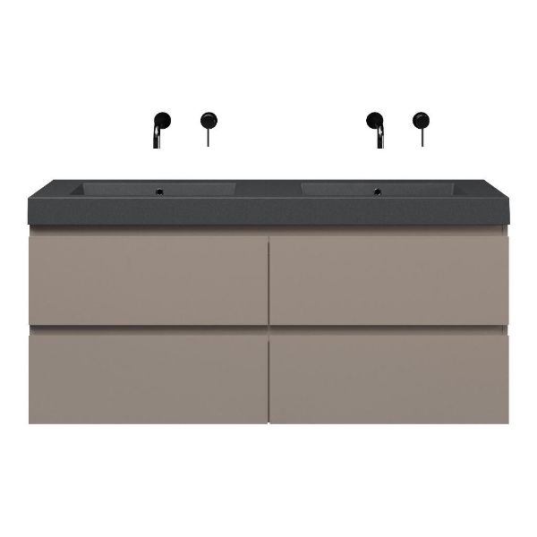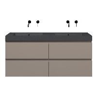 Bellanti Gisella/Esta-Q badmeubel 140x46 4 softclose laden taupe greeploos quartz wastafel dubbel mat grijs zonder kraangaten