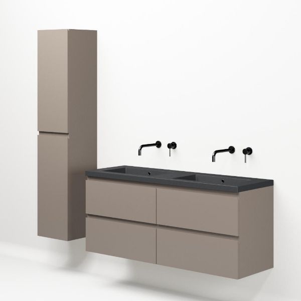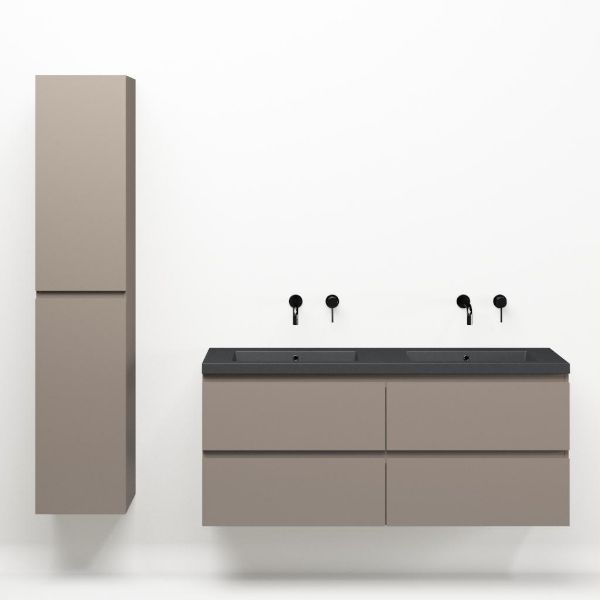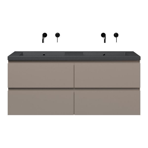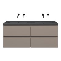 | | Bellanti Gisella/Esta-Q badmeubel 140x46 4 softclose laden taupe greeploos quartz wastafel dubbel mat grijs zonder kraangaten |