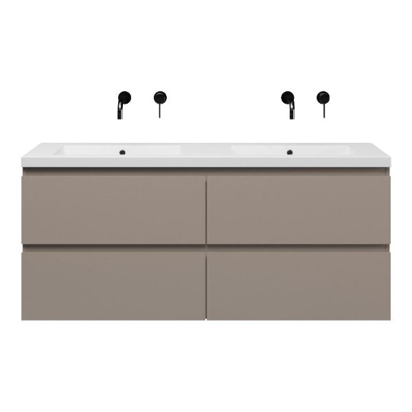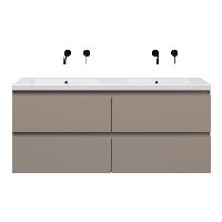 Bellanti Gisella/Esta-Q badmeubel 140x46 4 softclose laden taupe greeploos quartz wastafel dubbel mat wit zonder kraangaten