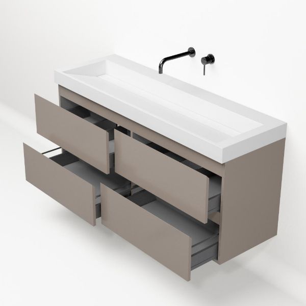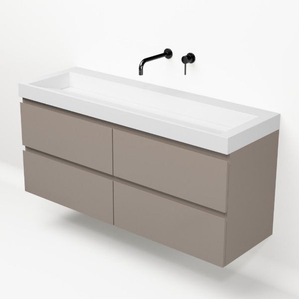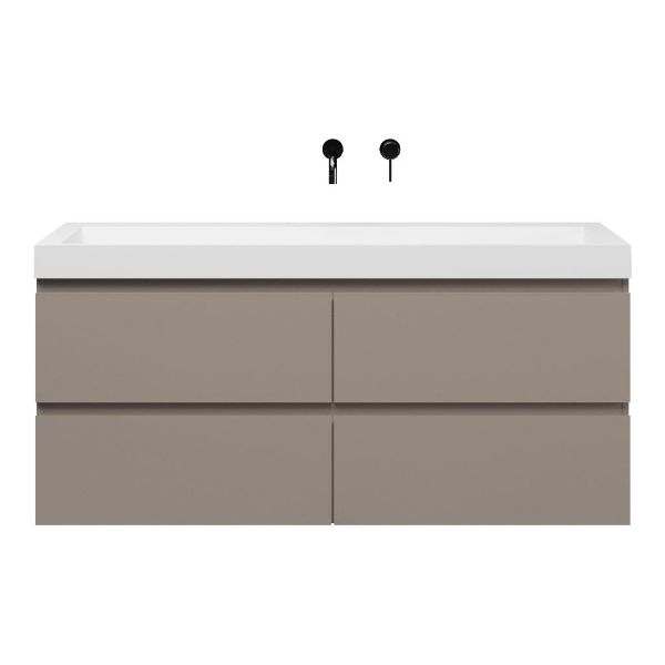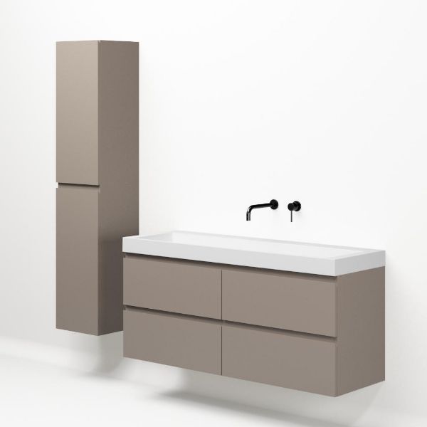 | | Bellanti Gisella/Renzo badmeubel 140x46 4 softclose laden taupe greeploos polystone wastafel wit zonder kraangaten |