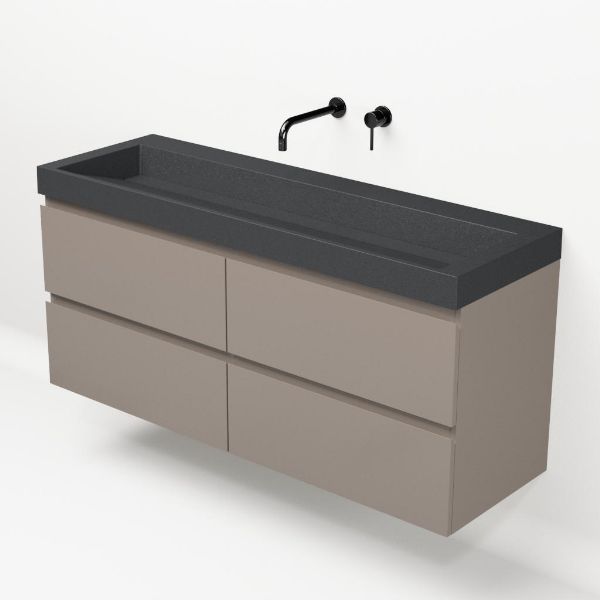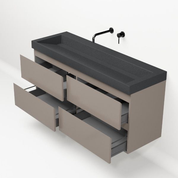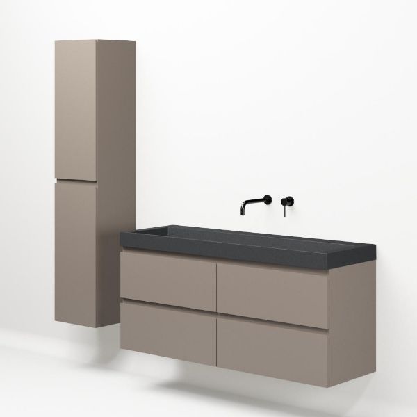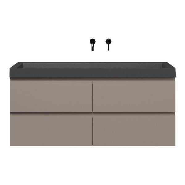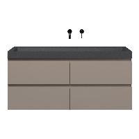 | Bellanti Gisella/Renzo-q badmeubel 140x46 4 softclose laden taupe greeploos quartz wastafel mat grijs zonder kraangaten |