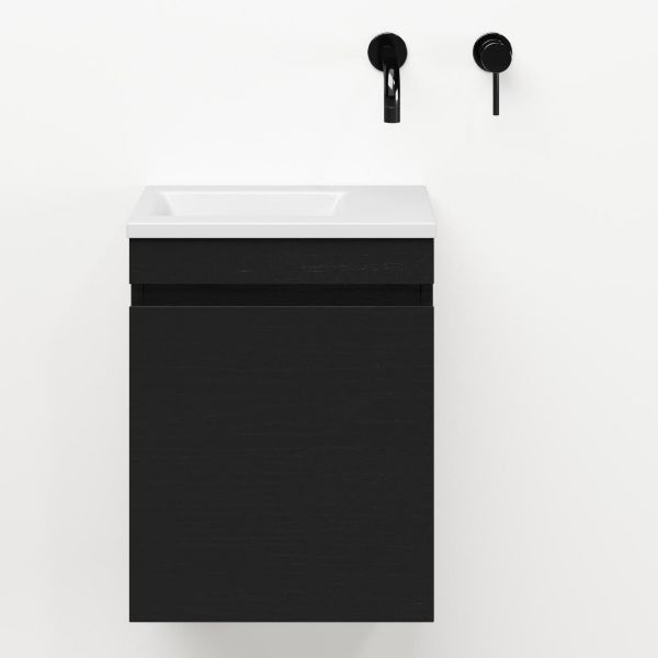 | Bellanti Bona/Rosanna fonteinmeubel 40x22cm mat zwart eiken met polystone wastafel wit zonder kraangat links/rechts |