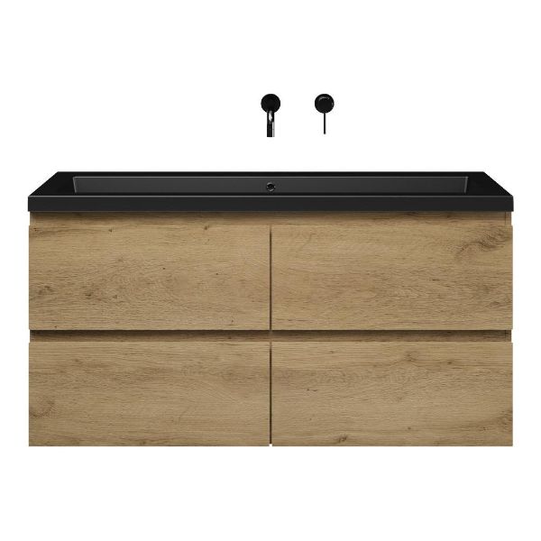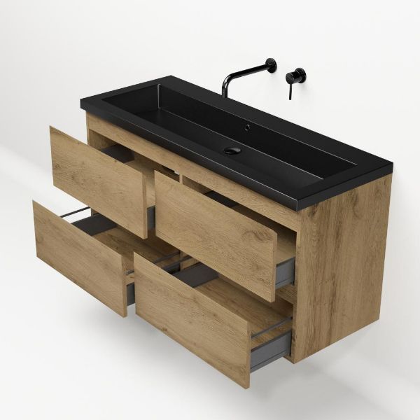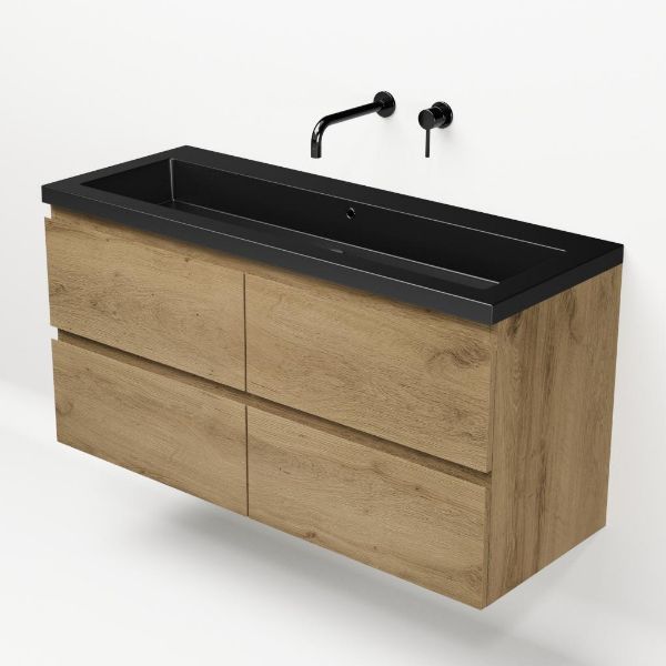 | | Bellanti Gisella/Esta badmeubel 120x46 4 softclose laden warm eiken greeploos polystone wastafel mat zwart zonder kraangaten |