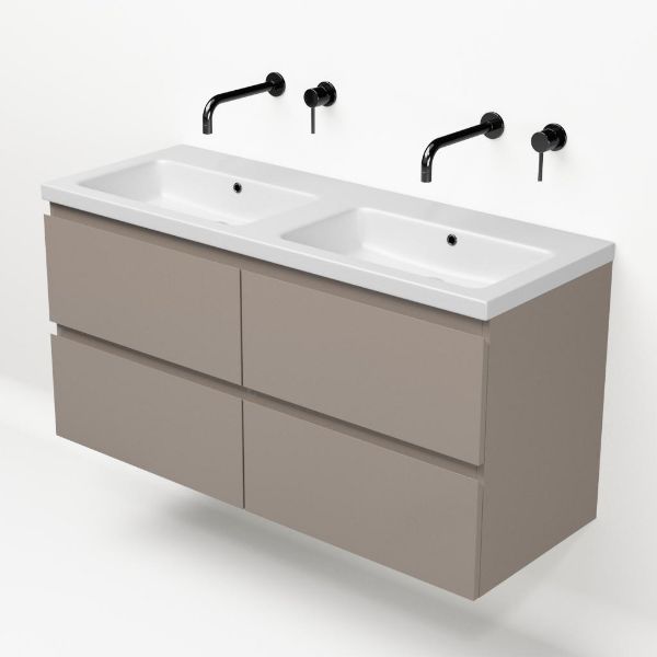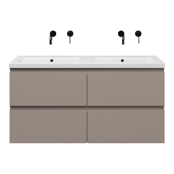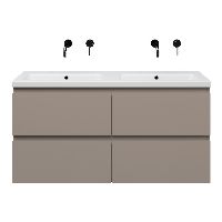 | | Bellanti Gisella/Amelia badmeubel 120x46 4 softclose laden taupe greeploos keramische wastafel dubbel wit mat zonder kraangaten |