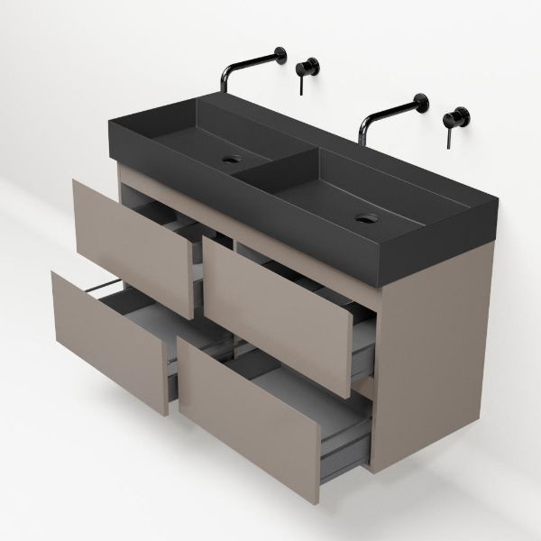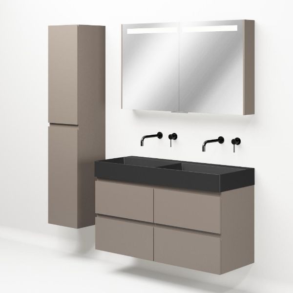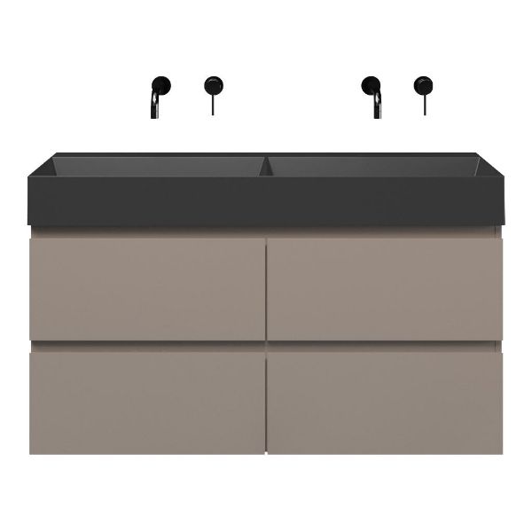 | Bellanti Gisella/Azzurra badmeubel 120x46 4 softclose laden taupe greeploos keramische wastafel dubbel antraciet mat zonder kraangaten |