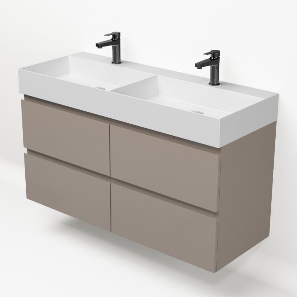 | Bellanti Gisella/Azzurra badmeubel 120x46 4 softclose laden licht taupe greeploos keramische wastafel dubbel wit mat met 2 kraangaten |